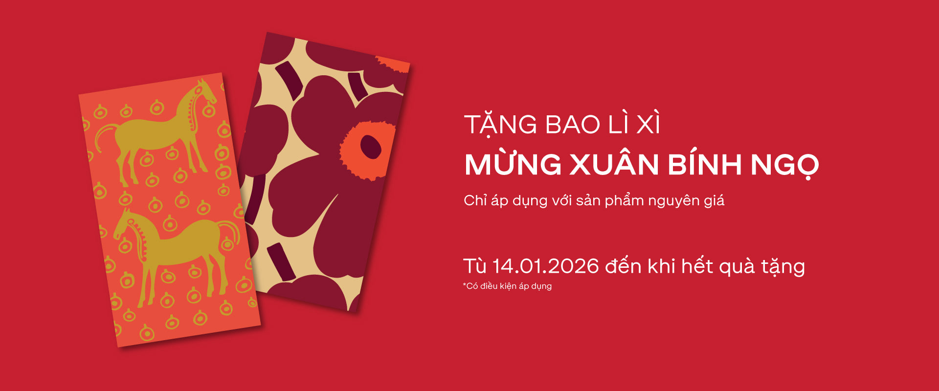 - Nhận ngay 1 Hộp Bao Lì Xì bản giới hạn với tất cả đơn hàng nguyên giá. Không giới hạn giá trị tối thiểu.