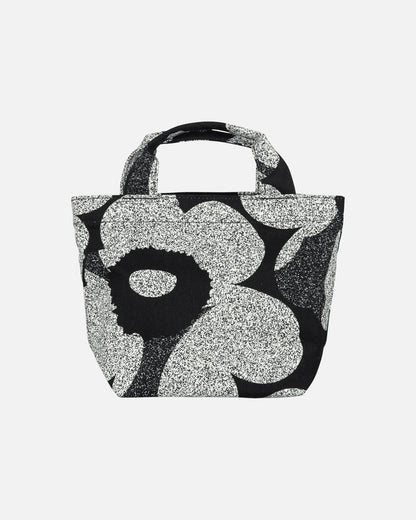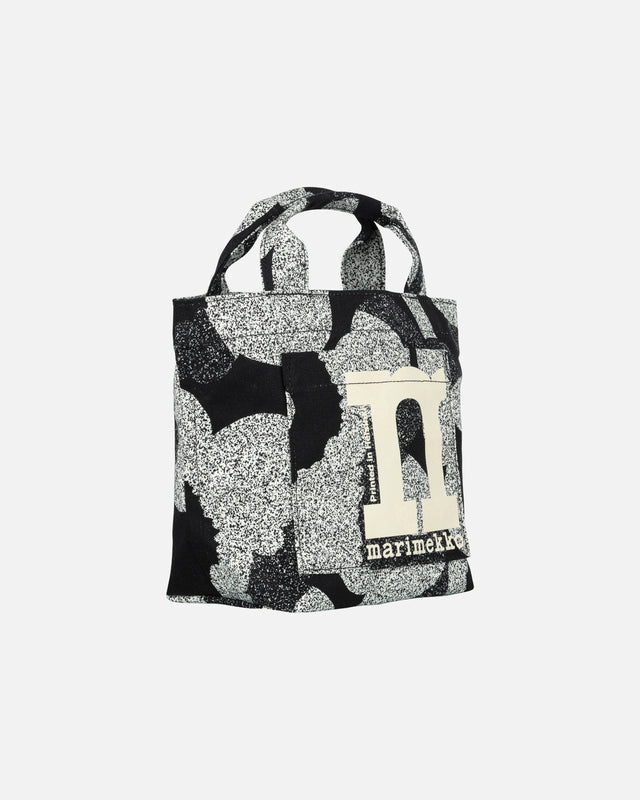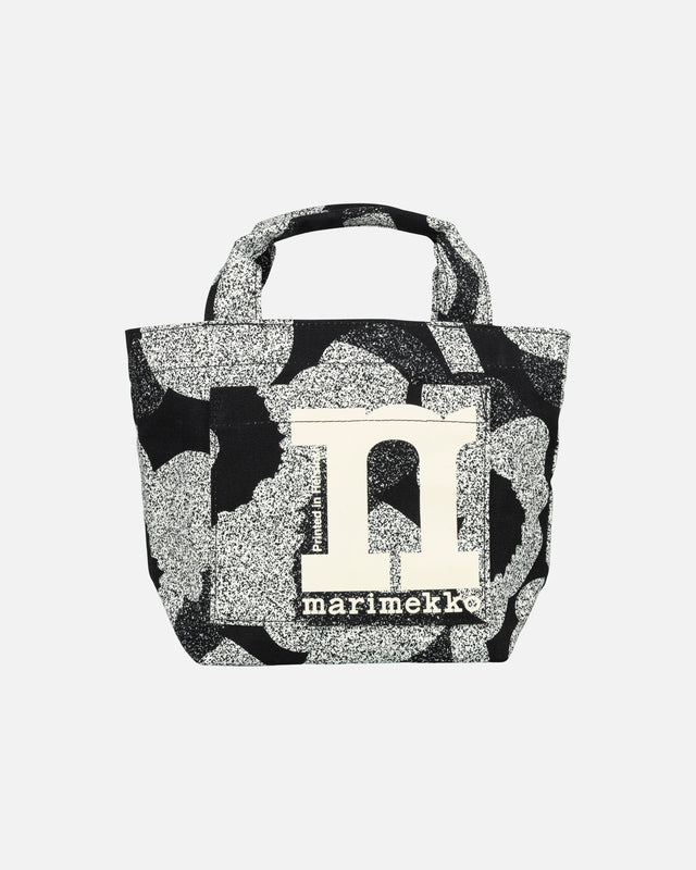 The Mono Mini Tote Unikko is made of organic cotton. The large Marimekko “M” is printed in the front. The small bag has handles and an open pocket on the outside.