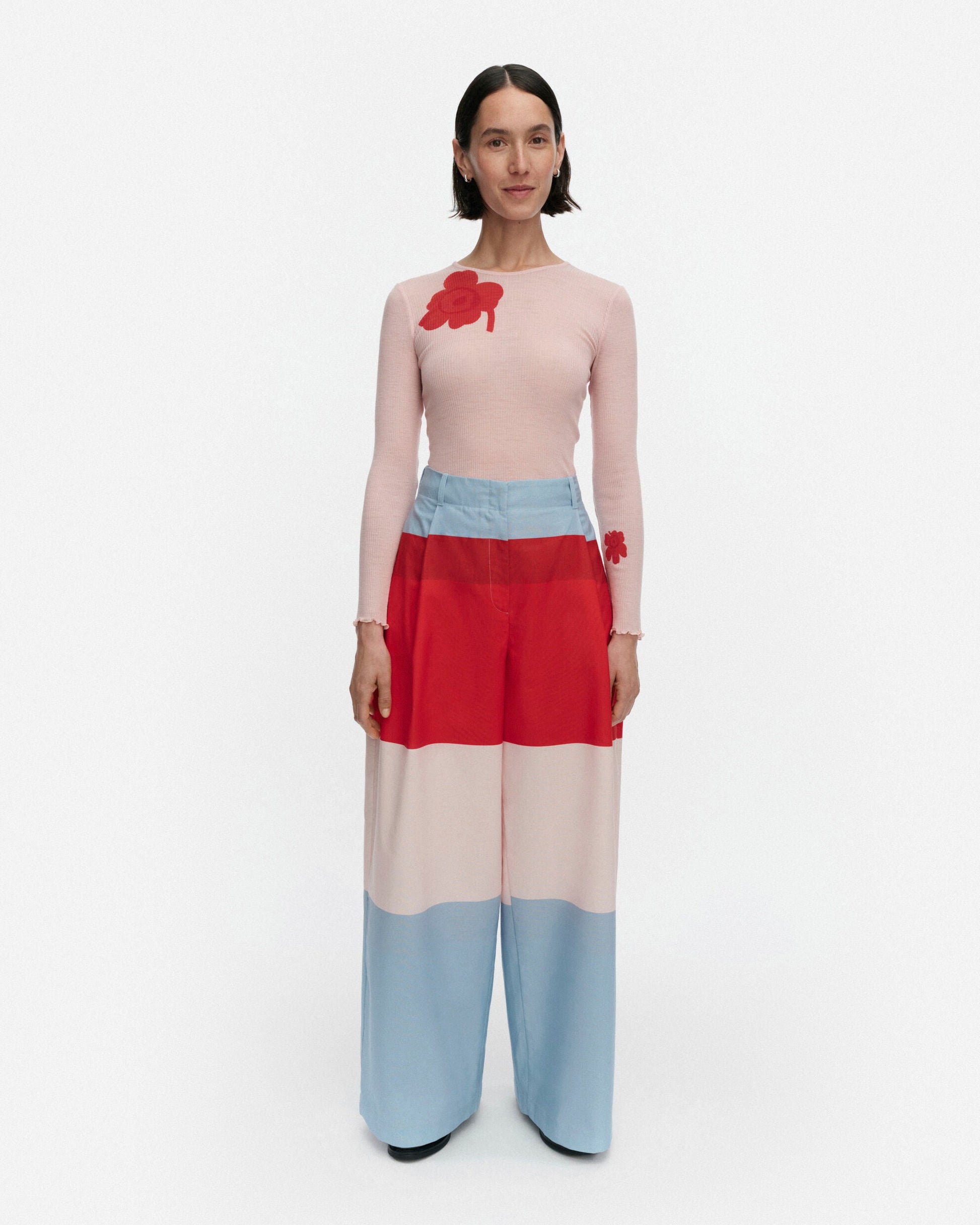 Hennika is an energetic, fresh, and at the same time quiet striped pattern formed of large color surfaces. Prints designed by Vuokko Eskolin-Nurmesniemi, who worked at Marimekko from 1953 to 1960, represent timeless Marimekko design at its core.