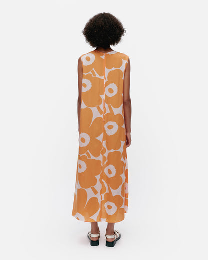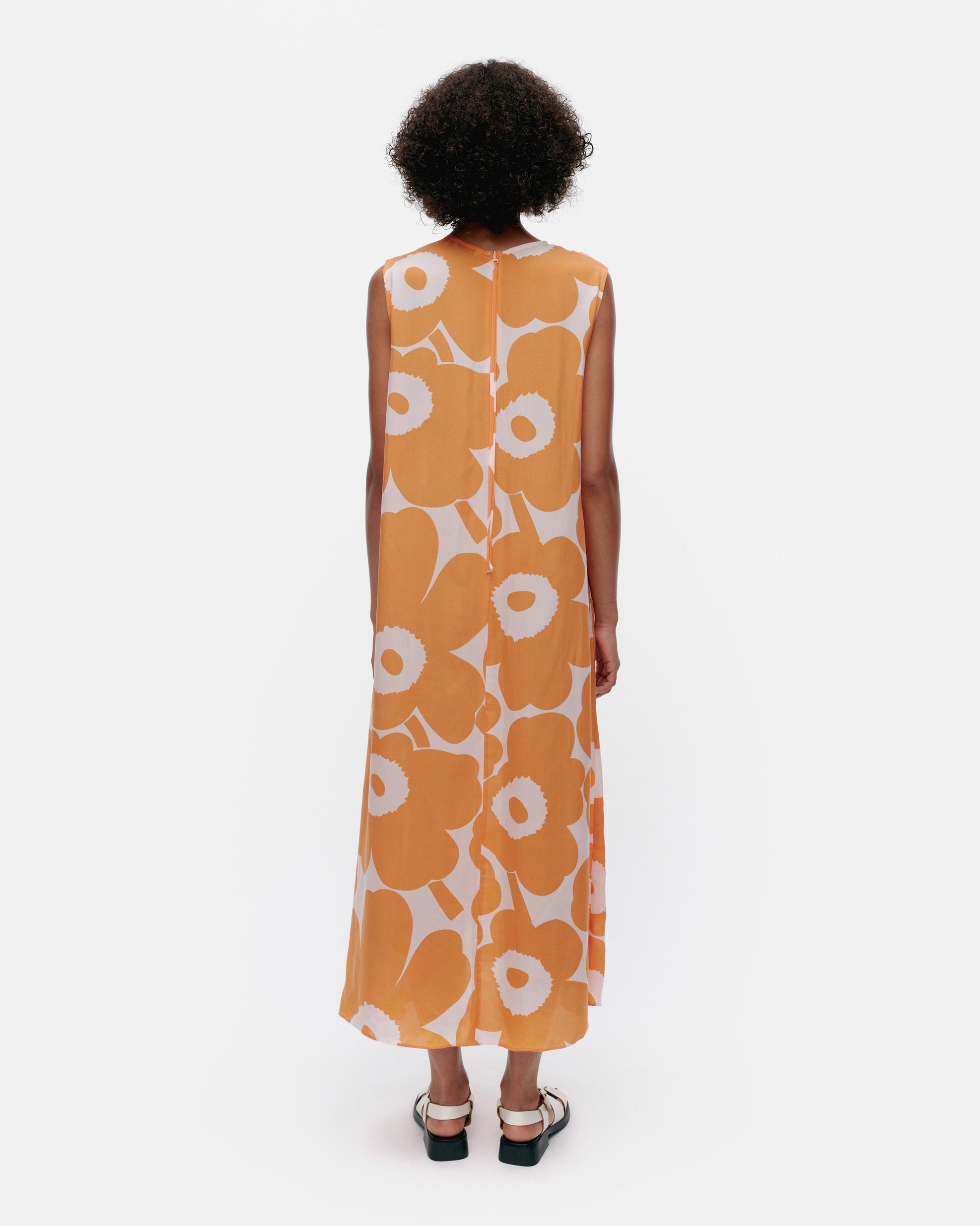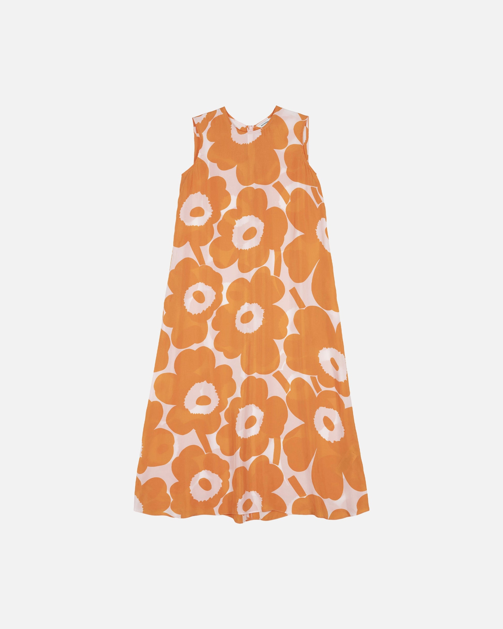 The Migot cupro dress has a slim, A-line fit and it is printed in the Unikko pattern. The sleeveless dress has a concealed zipper with long ribbon pullers at the back neckline and pockets at the side seams.