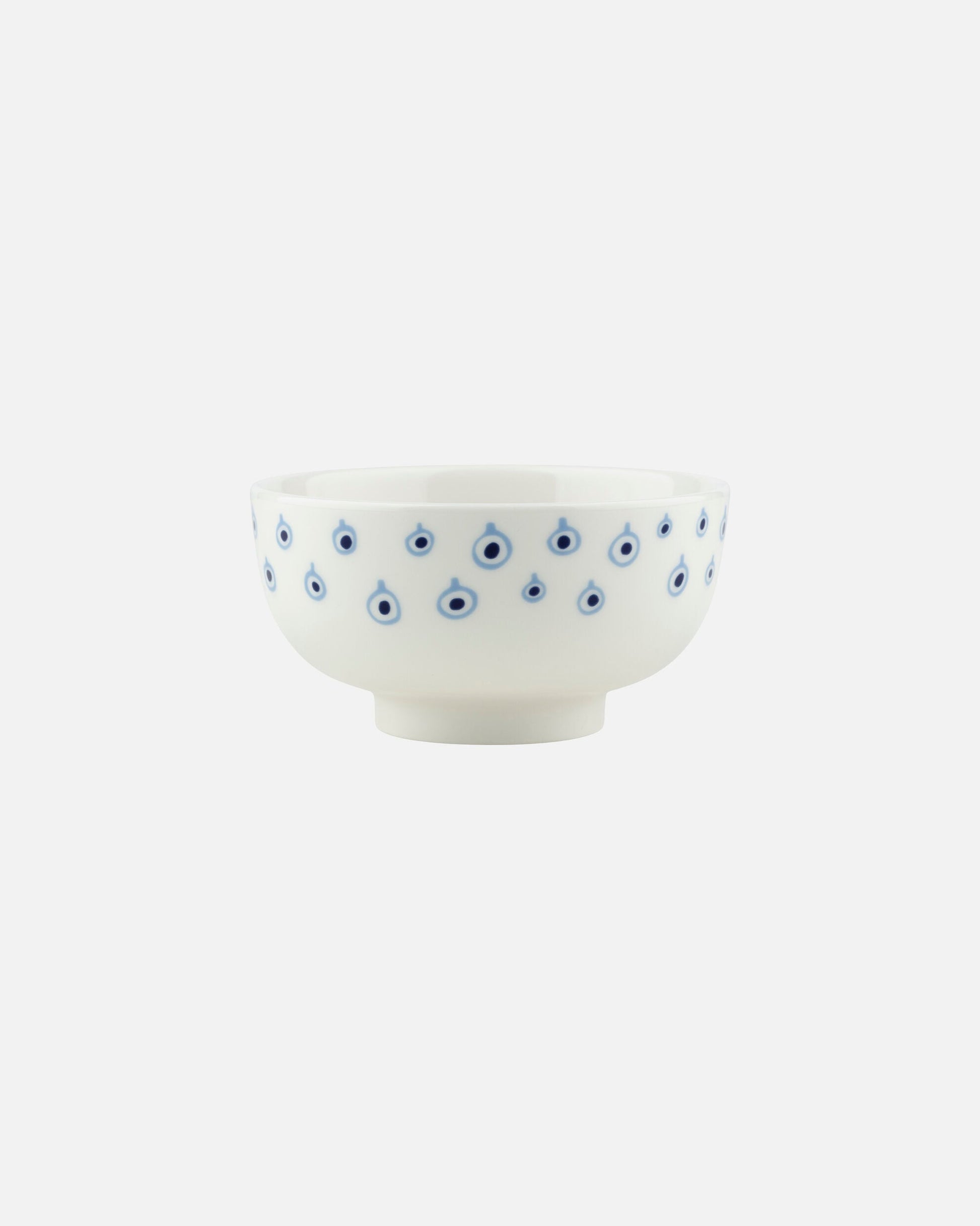 This rice bowl features the Musta Tamma pattern, and it is dishwasher, oven, microwave, and freezer safe.