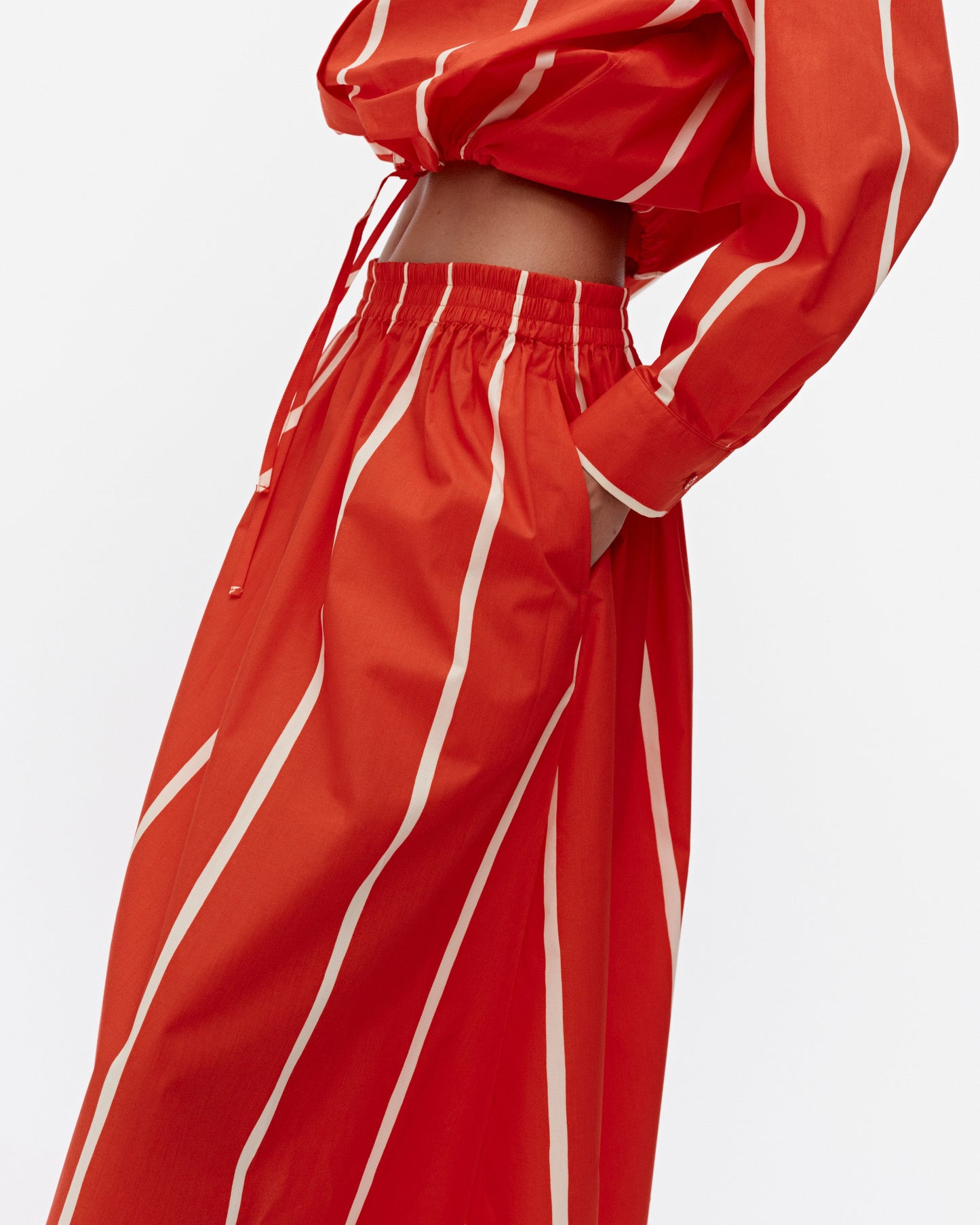 Stripes have always been a staple in the world of Marimekko patterns. Puhveli (buffalo) is an airy vertical stripe designed by Maija Isola in 1964.