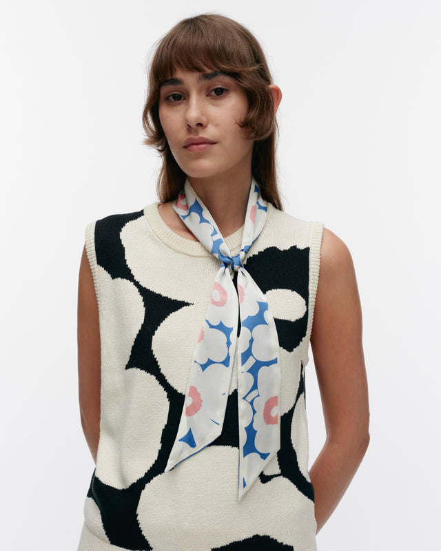 The narrow Jåvva silk scarf features the Unikko pattern.